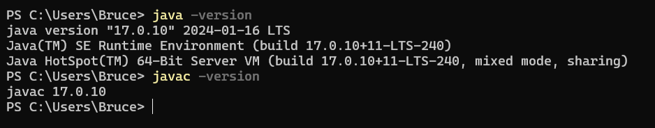 - 打开zhon,输入`java -version`和`javac -version`,若能正确显示版本信息,说明安装成功。