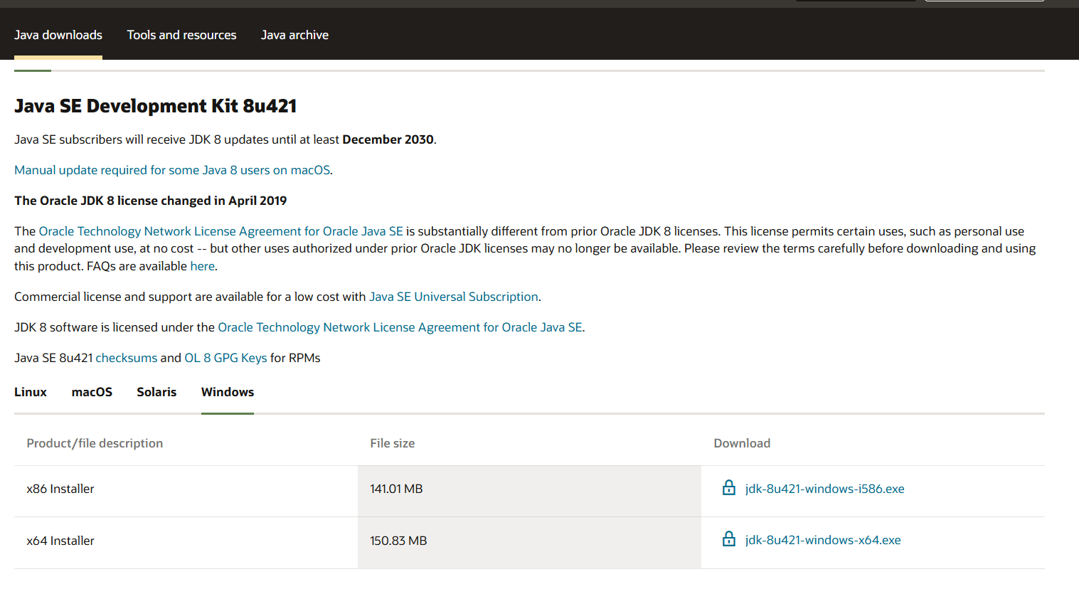 由于现在JDK8下载需要注册Oracle账号,为方便读者,现附上JDK8下载链接